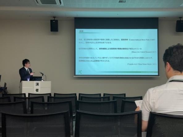 今回、「骨指向性癌細胞由来の副甲状腺ホルモン関連ペプチドが知覚神経に与える影響」のテーマで口頭発表させて頂きました。緊張しましたが無事に終えることができ、今回の発表で得た経験や指摘事項を学位審査に繋げていく所存です。